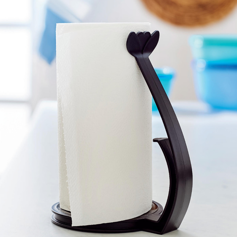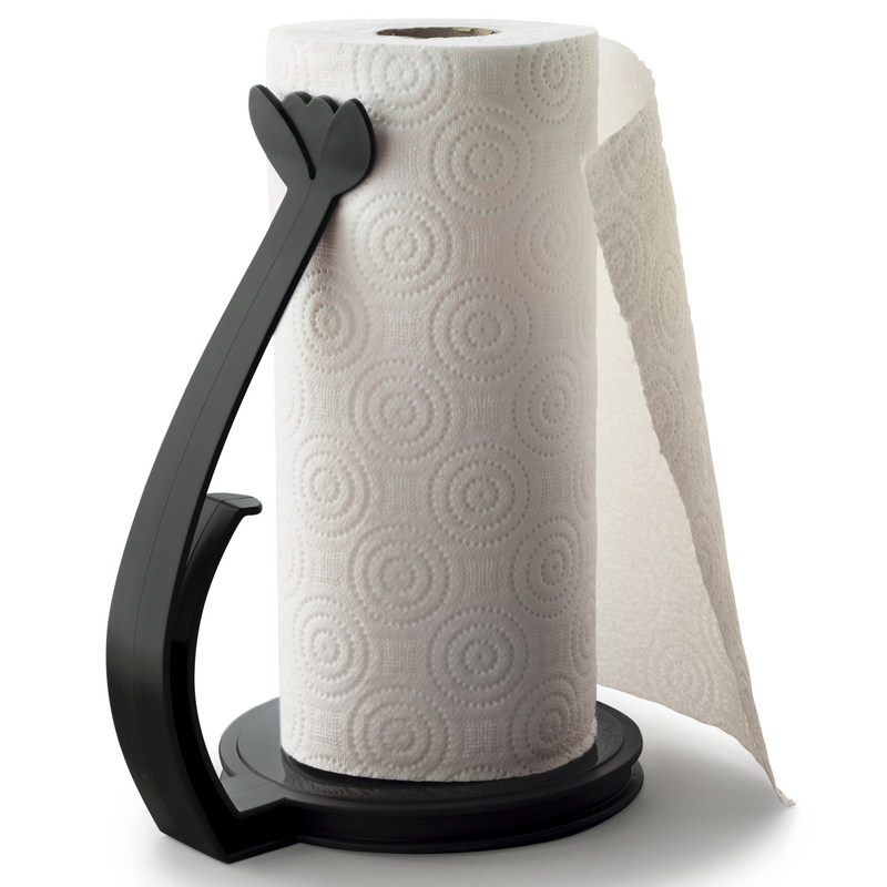 De flexibele greep houdt het losse einde van de papierrol netjes op zijn plaats. De voet van de keukenrolhouder staat steeds stabiel, zelfs wanneer het er hectisch aan toe gaat in de keuken of aan tafel.